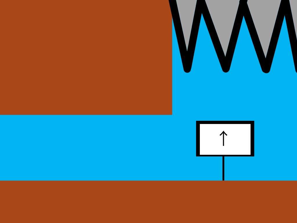 ↑ is the older brother of ↓, and he is just as malicious as his down facing brother. For the most part, he is much like his lil' bro, but without his ability where he launches himself like a spear, as it's twice as useless as ↓'s. However, he can make people float into spikes or other deadly things in turn, which make it all better.