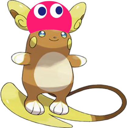 Alolan Raichu is a pokemon that came from Alola, but has grown much more as a person since then. Which one? Who knows? But it's interesting to say the least. Alolan Raichu is outgoing and energetic but cares deeply about her friends when the time comes. Though she's mostly energetic and oblivious to her surroundings, Alolan Raichu has appeared (canonically) in my 1st, 2nd, and 5th Miitopia playthroughs. Though if you haven't played that game, you wouldn't really care about this or know what I'm talking about.