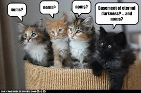 All his life, Basement Cat was a tad darker and more heavy-hearted than his kitten brethren. This darkness increased within his soul when he was cast into Hell and adopted by Bob Saget. There, Basement Cat learned the true art of being evil, as Bob Saget was the best example of evil one can ever hope to find. Finally, Basement Cat was ready to do wrong. First off, he stole Ceiling Cat's cookie, which made Ceiling Cat angry beyond comparison. The two of them never spoke to each other again. Then, Basement Cat created Dora the Explorer, which poisoned the minds of children everywhere. Finally, Basement Cat killed and ate Mickey Mouse, breaking the hearts of children everywhere. Since then, Basement Cat has lived in Hell, festering in his own evil.