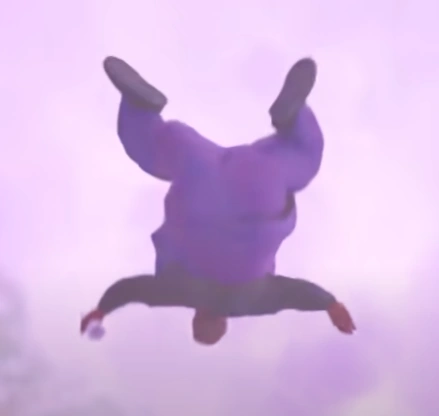 Dave Blunts falling through the sky in the music video. Note the usage of a CGI model as he is physically unable to get himself into this position