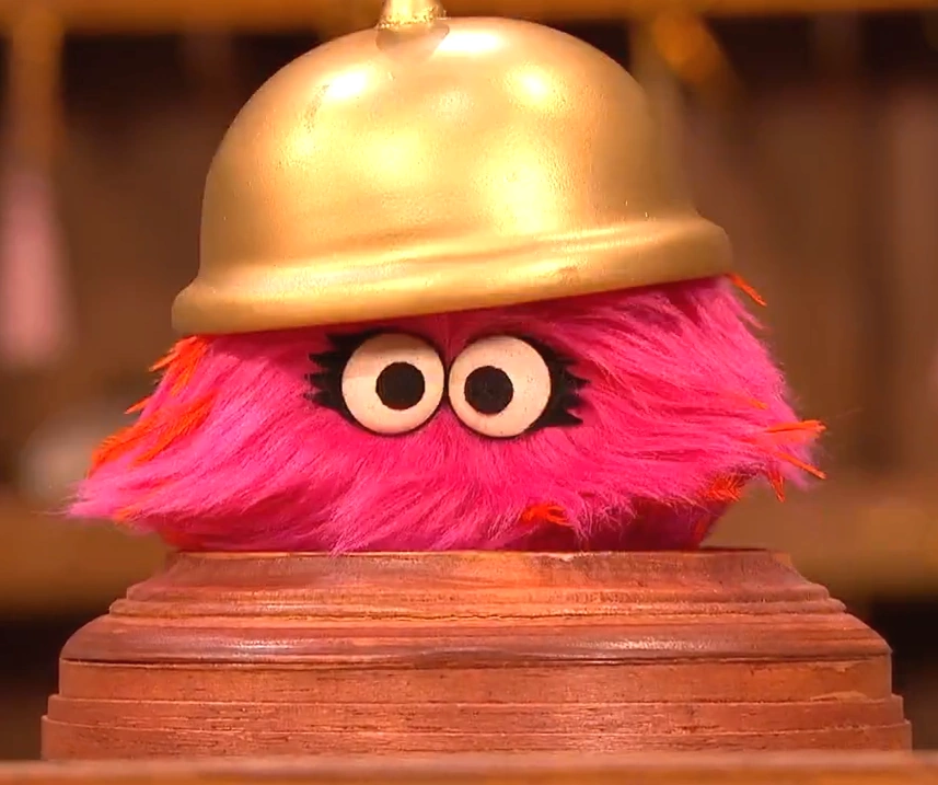 Isabel is a call bell (duh!) who has eyes, these eyes are always fixed and stare right through you. She is a permanent resident of The Furchester Hotel, so whenever you stay there, your greeted by a bell that will never keep her eyes off you. She is the stuff of nightmares for many, especially when she gets Using Too Much Sauce, where her eyes bulge out and her fur comes off, and believe it or not, this abomination is also a muppet! Why else would it be in a hotel filled with them? She is even part of the Elmo Gang.
