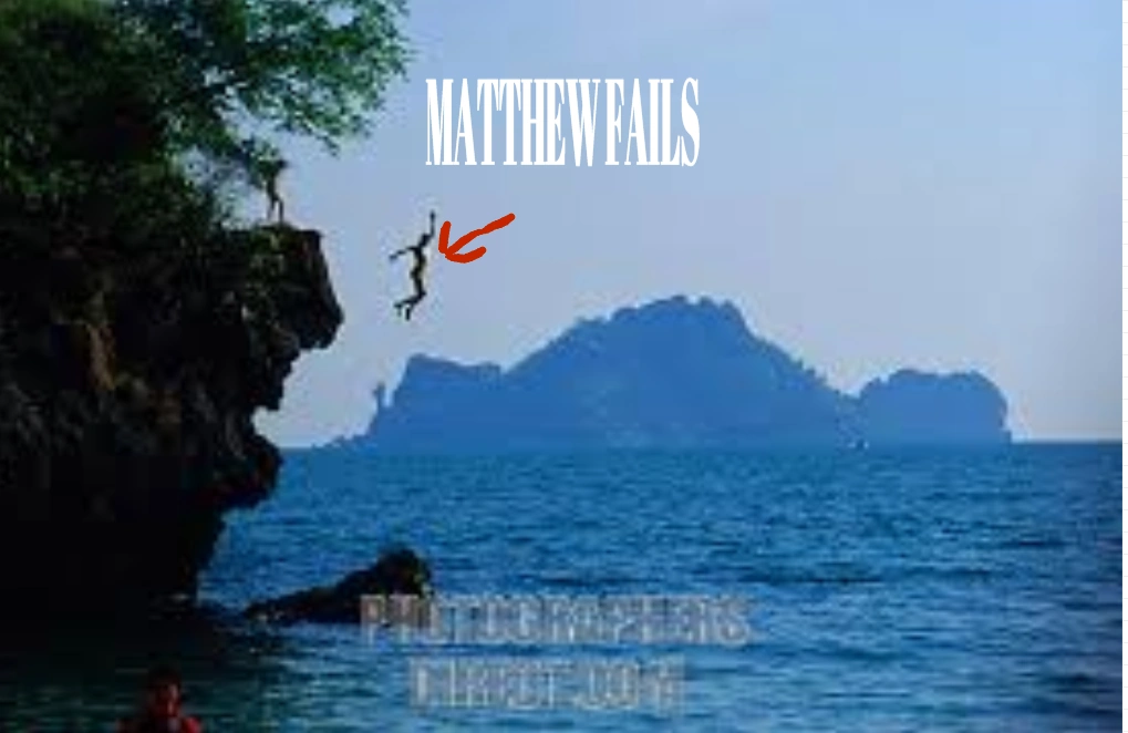 - Matthew jumps of a sea cliff and hits his head and lands in the water but is attacked by a cuttlefish