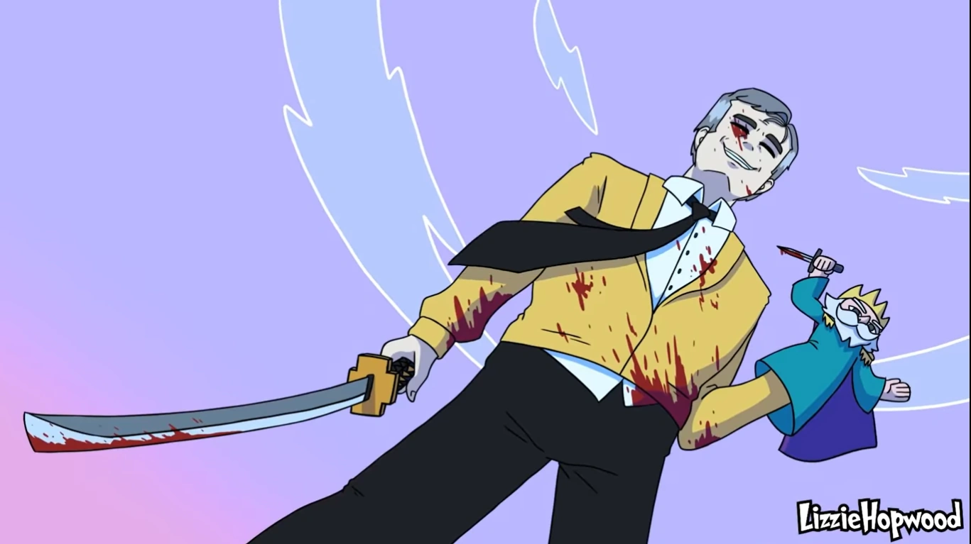 During the Ultimate Showdown of Ultimate Destiny, Mr. Rogers saw so much fighting and completely lost it. He ran around and injured or killed all of the combatants. He celebrated his victory for about five seconds, then he realized that he was a murderer. He then killed himself from grief before standing up and dancing the running man. He then flosses and does the Carlton and the Peanut Butter Jelly Time dance before flying into the sky and exploding in a shower of gore.