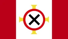 The Flag is basically a Canadian flag with a cross instead of a leaf