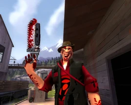 Piss Cakehole is a Sniper look-alike that had DNA's of Sniper and Freddy Krueger applied to him. He is banned from Earth for carving Everybody he smells. Yes, smells: his strongest sense, amplified through his facial features, is smell. He can smell You. Better start runnin'.