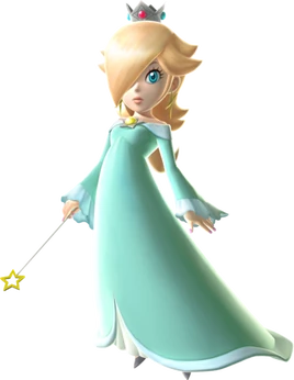 Rosalina is the queen of the Cosmos. She lives in an ice palace much like Elsa's, but instead of having a snowman named Olaf as a companion she lives alongside this star thingy called Luma. She was later married with Wario (WHY???!!!).