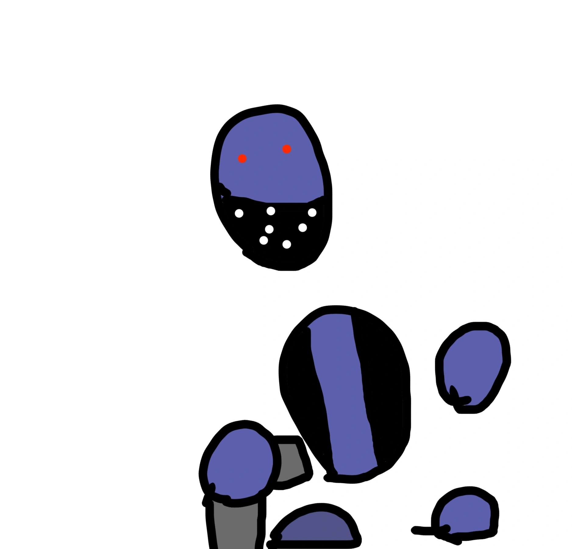 They are dark blue and have red pin pricked eyes. Ther wear bikers jackets, masks and/or bandanas round their faces and always carry an SV-1726-BearTRAP revolver with them.