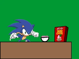 Sonic, after catching sight of his precious chilidogs.