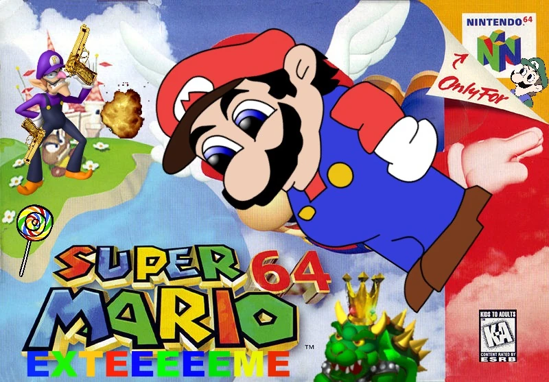 Super Mario 64 EXTREEEEEME is a video shame for the Nintendo 64. It has the same controls as Super Mario 64 and has new power ups. It has a complex story and DLC that you can buy at stores in real life or in the in-shame store.