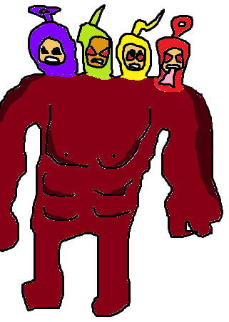 Teletubbies Unbound is the fusion of the Teletubbies. He is so overpowered he can destroy the entire planet. But he doesn't because he likes Tubby Toast. Wander tries to make friends with him, Wander took if Teletubbies Unbound didn't want to be his friend.