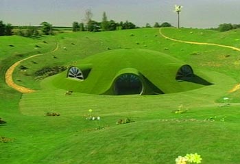 Tubby Dome also known as Tubbytronic Superdome is a big dome-shaped house where The Good Teletubbies live in. Located in Nice Teletubbyland. It was built by Good Tinky Winky and made it unbreakable when he and Good Laa-Laa moved to NT. It is where they eat "Tubby Toast" and "Tubby Custard" (actually less evil knock-offs of them made in China) and sleep. Some say that this house is just a fatter version of Tubby Tower, well those people are right. There is a big hole at the top of the house where they go down a slide. There's also a two doors at back and front. The inside of it, you can find a computer (called a Central Panel by people) where They pull levers and make lots of noises. This place is just......wonderful! Which is better? Tubby Tower or This?.