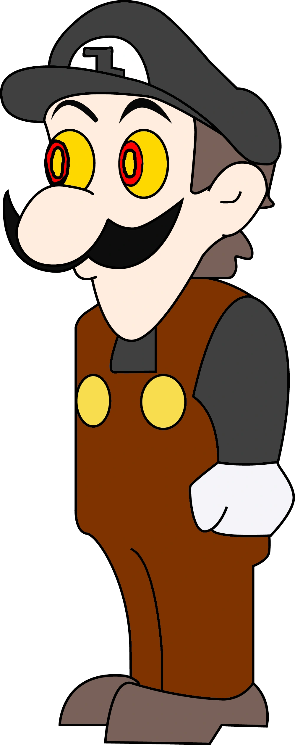 Zeegee is a very crazy person. The story of how he was created is freaky. He is truly the stuff of nightmares! Anyway, let's get on with the creation story shall we. It all started one day when Weegee was watching TV, and WaWaluigi came up from behind the couch and used a Knock-out-Ray on him. He then took knocked out Weegee to his fusion labs in WaWorld. He then went after Guiyii. Guiyii at the moment was doing what he/she or whatever it is does best, Being crazy. Once again WaWaluigi used his Knock-out-Ray. He dragged Guiyii to his fusion labs. He put the two sleepy people in the Fusion-Machine 9000 and it combined Weegee and Guiyii into someone new. His name was Zeegee.