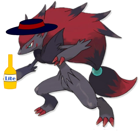 Zoroark is a criminal Pokemon who is wanted for working alongside the Cyberdemon. He is dangerous, as is more insane than the Angry German Kid. Not to mention he is the deadliest gangster alive. He acts insane because he is addicted to Budweiser Lite. He likes rap songs about crimes, as he is a criminal.